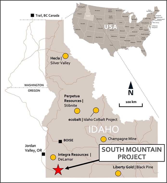 South Mountain is a polymetallic development project focused on high-grade zinc and is located approximately 70 miles southwest of Boise, Idaho (See Figure 2). The Project was intermittently mined from the late 1800s to the late 1960s and its existing underground workings remain intact and well maintained. Historic production at the Project has largely come from high-grade massive sulphide bodies that remain open at depth and along strike. According to historical smelter records, approximately 53,642 tons of mineralized material has been mined to date. These records also indicate average grades; 14.5% Zn, 363.42 g/t Ag, 1.98 g/t Au, 2.4% Pb, and 1.4% Cu were realised (See NI 43-101 Technical Report: Updated Mineral Resource Estimate for the South Mountain Project, dated June 15, 2021, Section 6.4 – Table 6.3 for more details. Available on the BeMetals website and at www.sedar.com). Thunder Mountain purchased and advanced the South Mountain from 2007 through 2019, with expenditures into the Project of approximately US$12million.